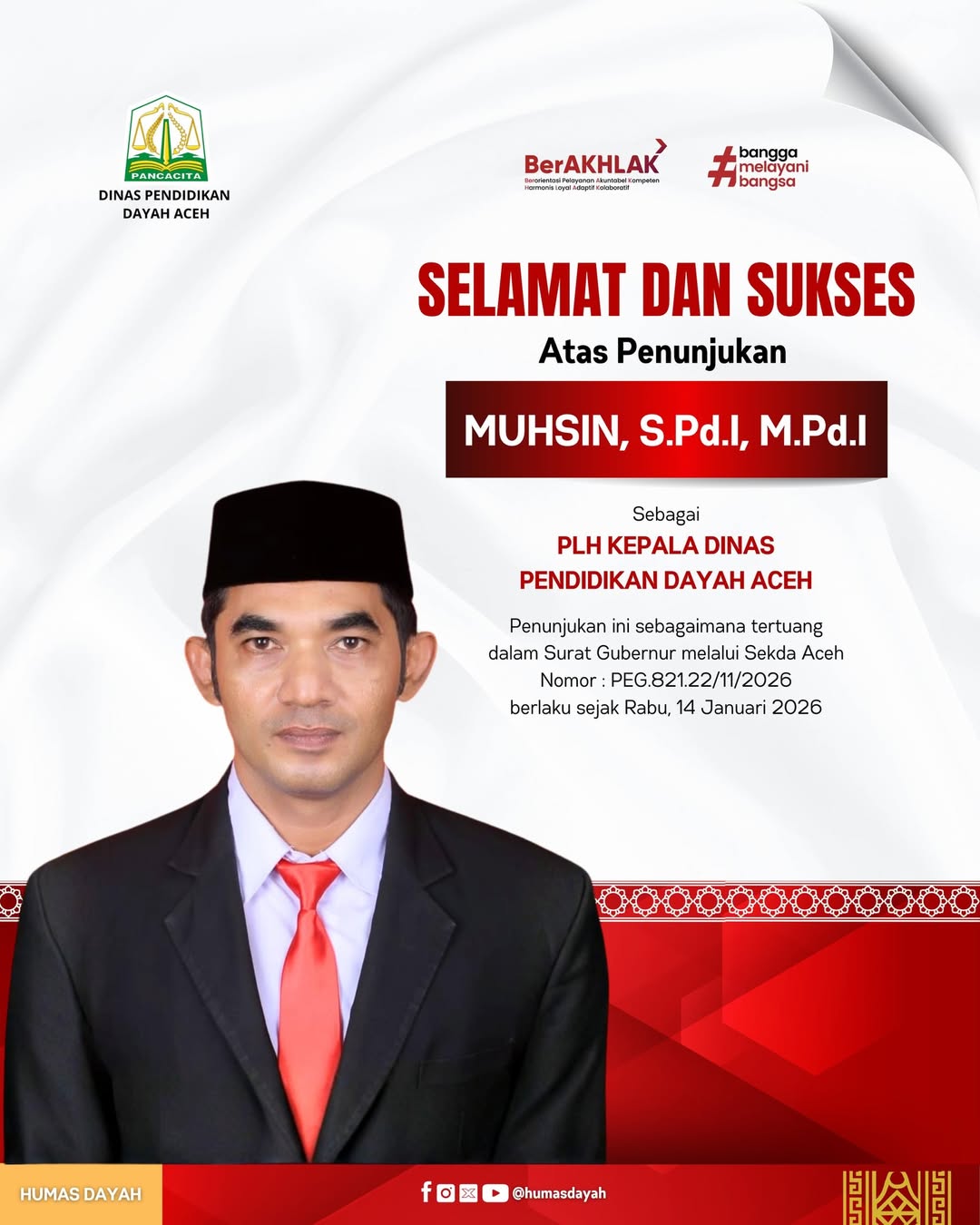 IKLAN DISDIK DAYAH ACEH – UCAPAN SELAMAT ATAS PENUNJUKAN MUHSIN, S.PDI, M.PDI SEBAGAI PLT KADISDIK DAYAH ACEH IKLAN|Januari 14, 2026Februari 21, 2026oleh Penapost Redaksi