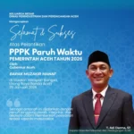IKLAN DINAS PENGAIRAN ACEH – UCAPAN SELAMAT ATAS PELANTIKAN PPPK PARUH WAKTU PEMERINTAH ACEH TAHUN 2026 IKLAN|Januari 29, 2026Maret 4, 2026oleh Penapost Redaksi