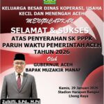 IKLAN DISKOP DAN UKM ACEH – UCAPAN SELAMAT DARI SEKRETARIS DAERAH ACEH ATAS PELANTIKAN PPPK PARUH WAKTU PEMERINTAH ACEH TAHUN 2026 IKLAN|Januari 29, 2026Februari 21, 2026oleh Penapost Redaksi
