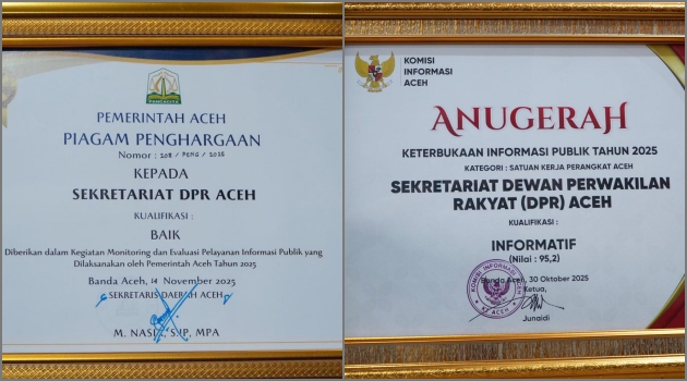 “Kami mengucapkan terima kasih atas penghargaan yang diberikan kepada Sekretariat DPRA. Capaian ini menjadi motivasi bagi kami untuk terus memperkuat komitmen keterbukaan informasi publik serta meningkatkan kualitas pelayanan informasi kepada masyarakat,” ujar Khudri.