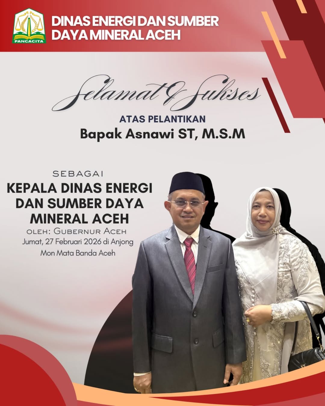 IKLAN DINAS ESDM ACEH – UCAPAN SELAMAT ATAS PELANTIKAN ASNAWI ST, M.S.M SEBAGAI KEPALA DINAS IKLAN|Maret 7, 2026Maret 12, 2026oleh Penapost Redaksi