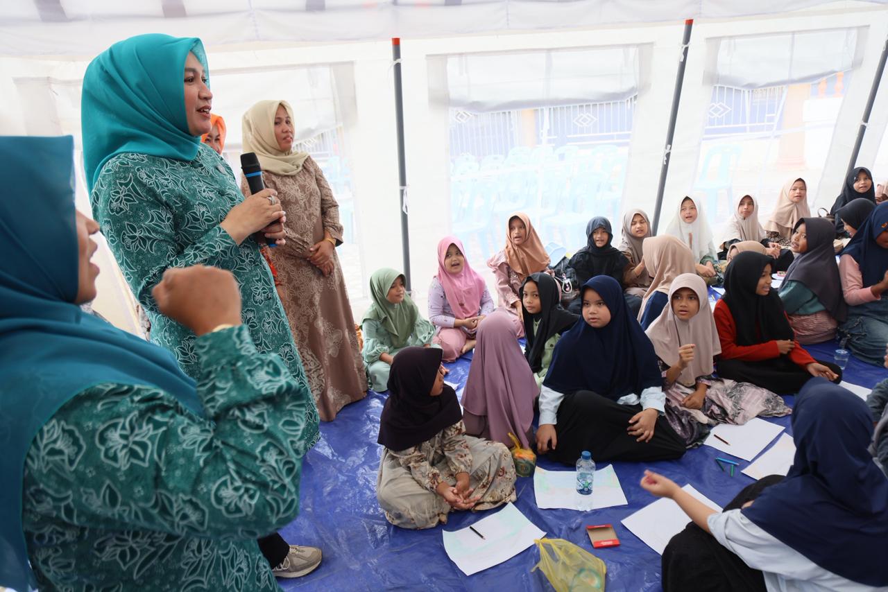 Pada kesempatan tersebut, Kak Na juga memberi motivasi dan dorongan semangat kepada ratusan siswa di SD 6 Jamboe Aye, yang dengan tekun mengikuti proses belajar mengajar di tenda Sekolah Darurat